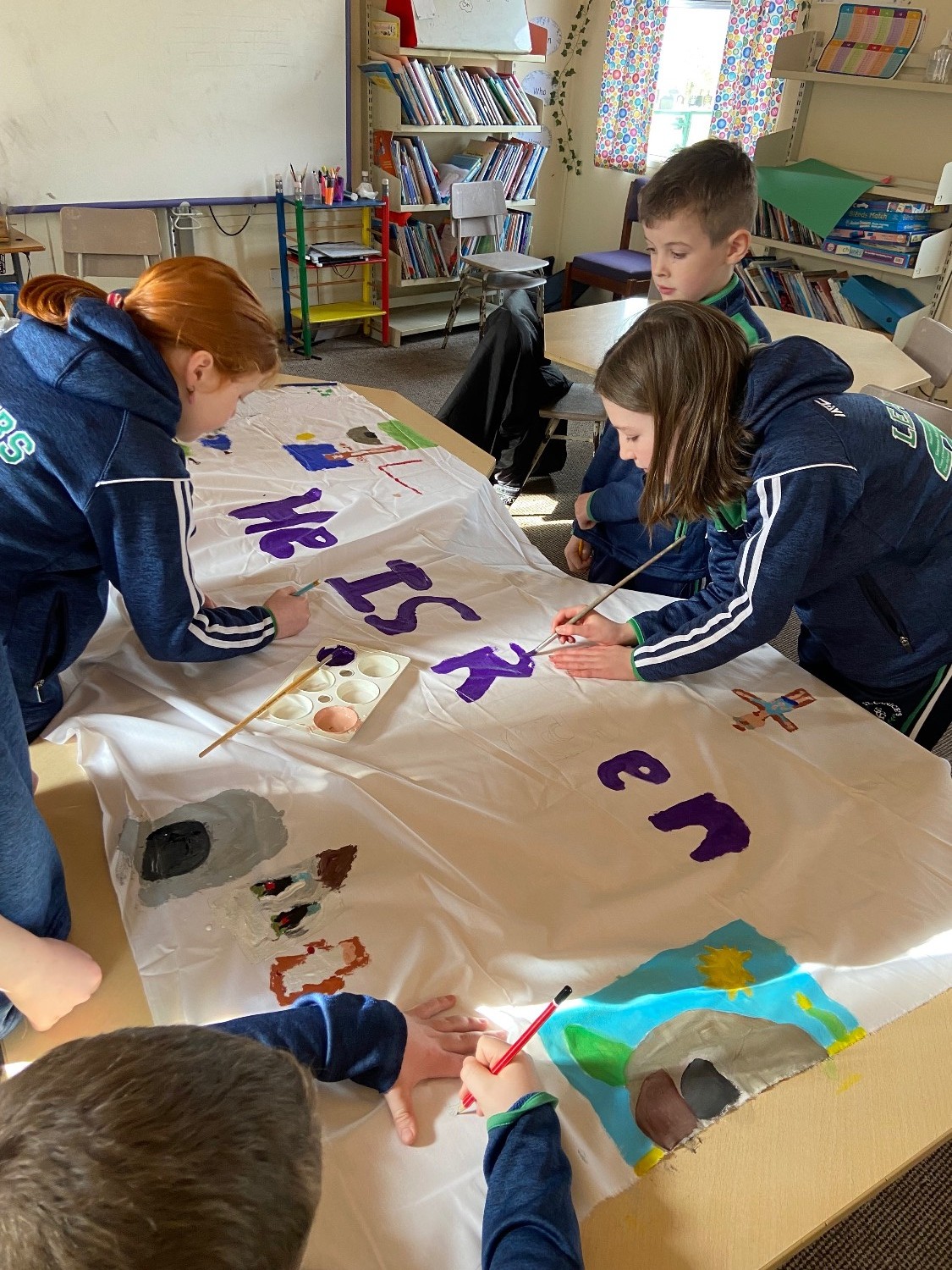 Last week Primary 4, with the help from some P7s, took part in ‘Cloth on the Cross’ workshop. This will be displayed in our chapel during Lent. Thank you to Charlotte and Aine for their help!